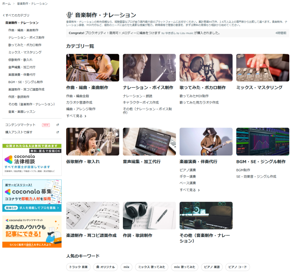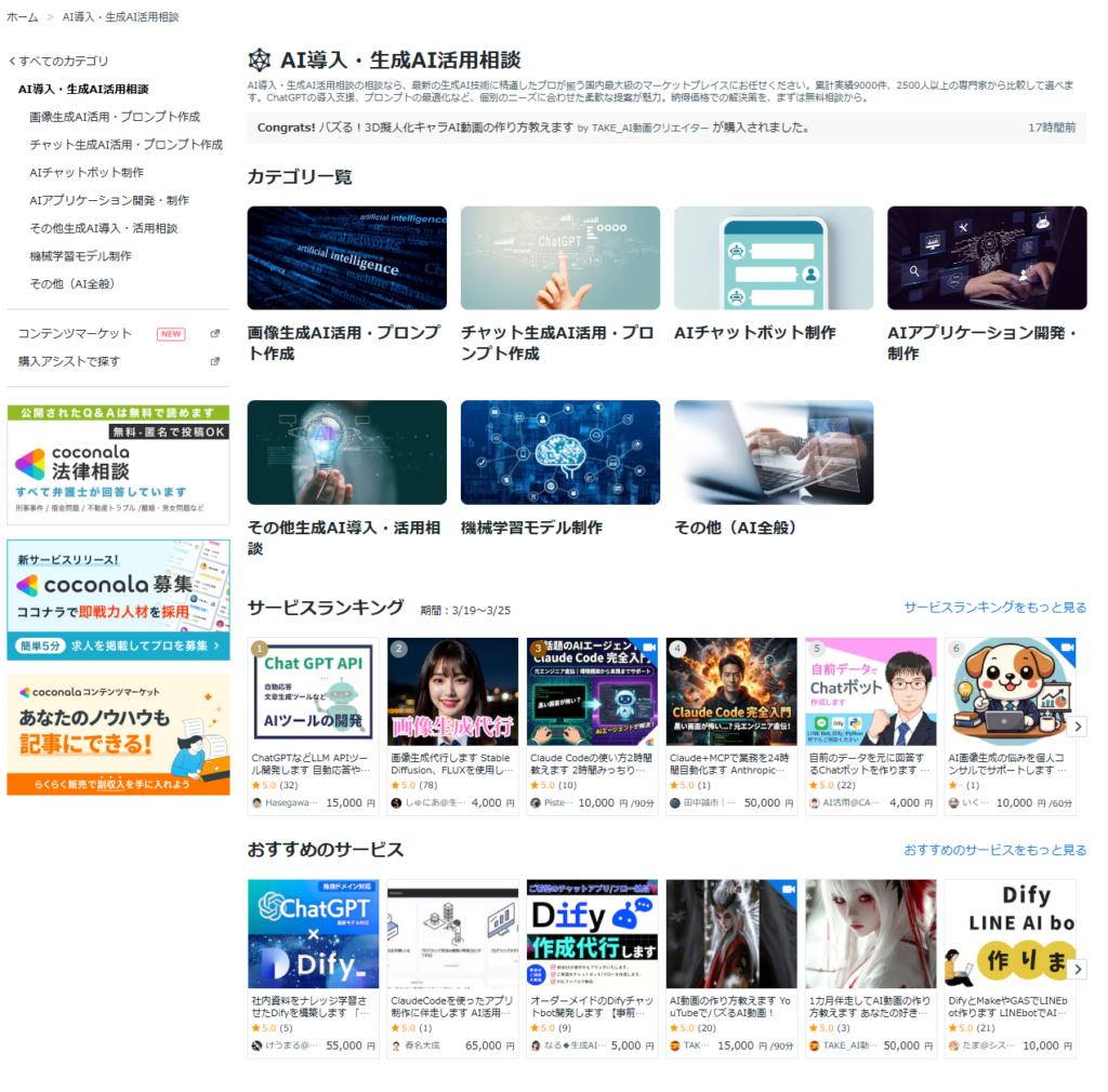 商材名 ココナラ