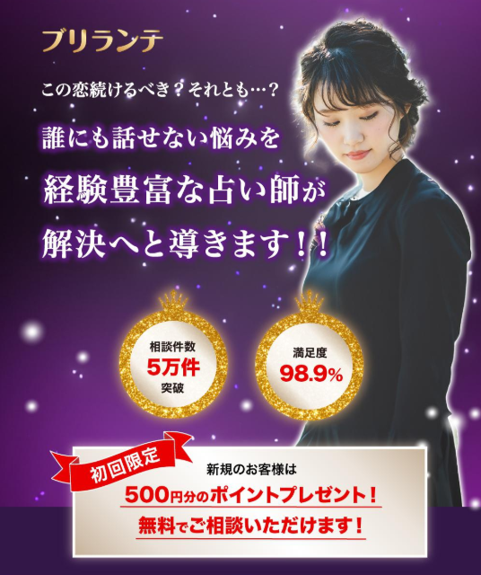 【PR】ブリランテ 恋愛や人間関係の悩みを、もっと気軽に相談できたら…。そんな声から人気が高まっている、スマホで完結する“チャット相談型”の占いサービスをご紹介します。場所を選ばず、ちょっとした空き時間に利用できる手軽さが支持され、初めての人でも挑戦しやすいのが魅力。 ▶おすすめポイント24時間いつでも相談できる手軽さ スマホがあれば外出先でも自宅でもOK。対面や通話と違い、時間の制約が少なく利用しやすい。料金がわかりやすく、始めやすい価格帯 初回向けの特典やお得なプランがあり、気軽に試しやすいのが魅力。チャット履歴が残る安心感 アドバイスを後から読み返せるため、重要なポイントを見落としにくい。落ち着いて相談できるコミュニケーション形式 文章で送るため、気持ちを整理しながら伝えられ、深い相談もしやすい。▶こんな人におすすめ恋愛・復縁・人間関係の悩みを相談したい人 恋愛相談の利用が多く、気持ちに寄り添ったアドバイスを求める方に向いています。通勤・育児・家事の合間に利用したい人 すきま時間を活用して相談したい忙しい方にぴったり。文章で気持ちを整理したいタイプ 電話だとうまく話せない、じっくり考えて伝えたい人におすすめ。まずは低コストで試してみたい初心者 初回向けの特典があるため、気軽に体験したい人に向いています。 詳細はこちらをクリック 💎おすすめ鑑定士💎 脅威のエネルギーで問題解決!潜在意識に働きかけ、最善の方向を一緒に探してくれます。 タロットや占星術など色々な戦略を用いてお悩み解決に導いてくれます! 恋愛全般が得意分野で、その的中率に驚きの声が多数! 商材名 ブリランテ運営者 K.O※当サイトはアフィリエイトプログラムを利用し宣伝目的で作成しております。